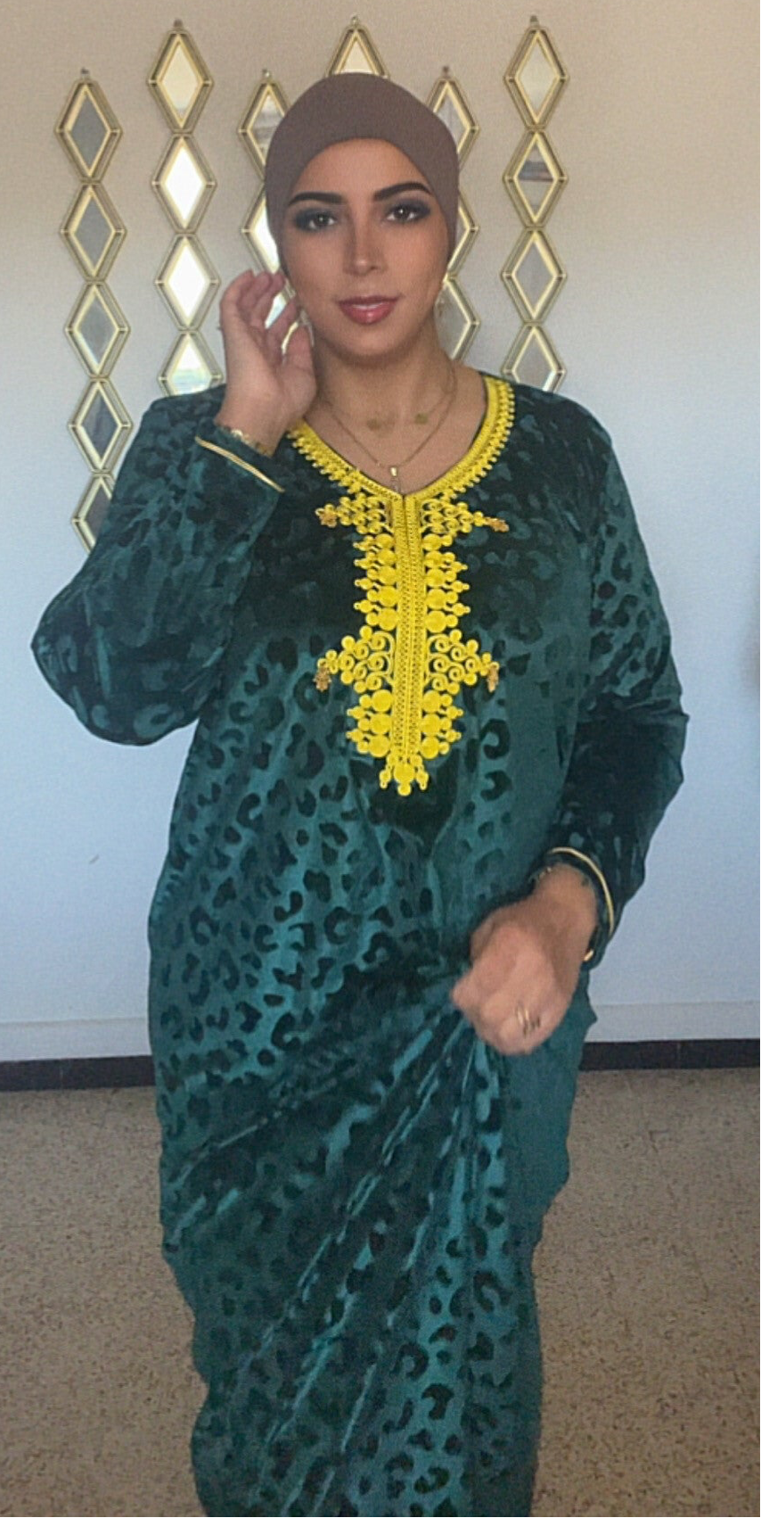Robe Velours vert/jaune
